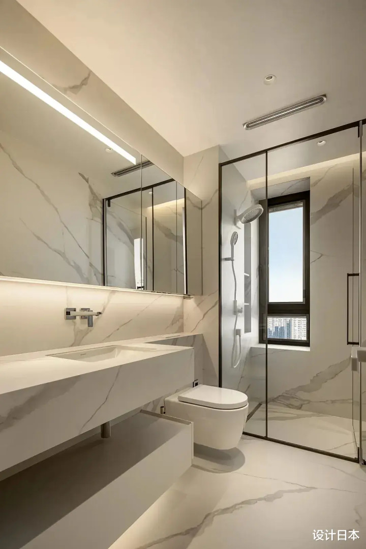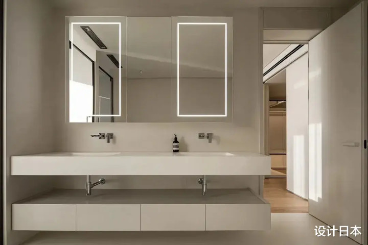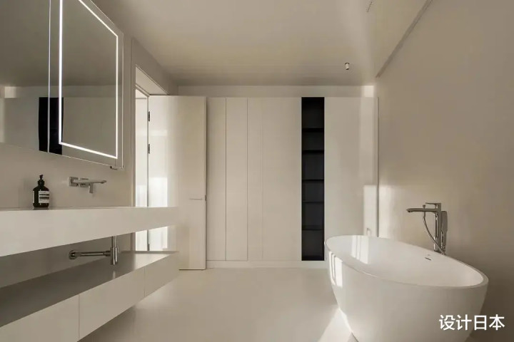 浴室空间中,设计师将浴室的收纳需求纳入了重要的考量范围。通过巧妙的收纳设计,不仅满足了居住者的日常储物需求,更在保持极简质感的同时,与生活的多元化需求形成了完美的呼应。